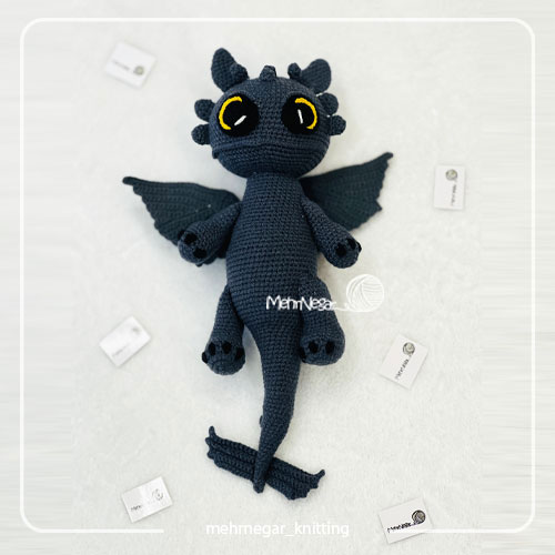 - قد عروسک دست باف اژدها بی دندان حدود 30 سانتیمتر